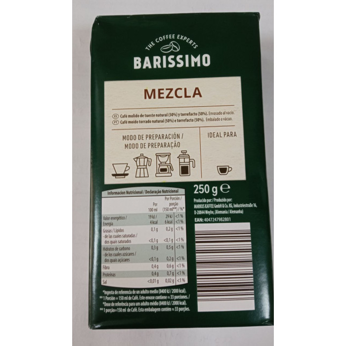 BARISSIMO 50/50 — это уникальный молотый кофе с идеальным сочетанием 50% традиционно обжаренных зёрен и 50% зёрен в стиле торрефакто (обжарка с добавлением сахара для карамельного аромата). Такой бленд даёт насыщенный вкус, лёгкую сладость и густую кремовую пенку.