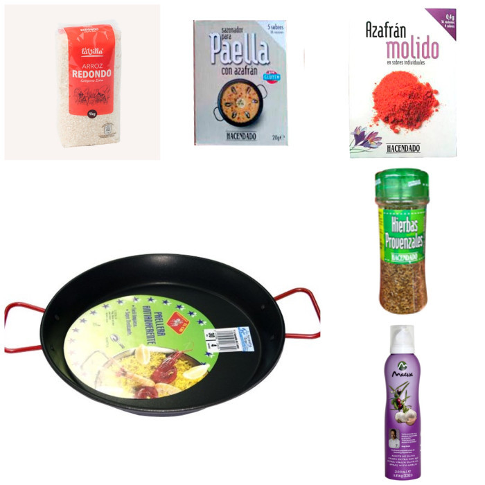 Набор для паэльи: специи, рис круглый, сковорода-паэльера из шлифованного железа с антипригарным покрытием Ø 38см, оливковое масло