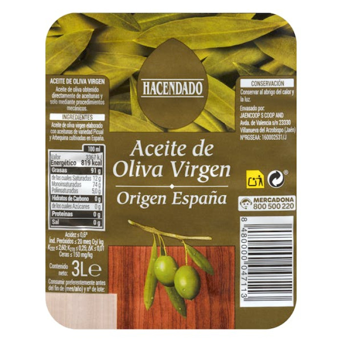 Выберите качество и традиции с оливковым маслом Hacendado Virgen Extra 3 л!