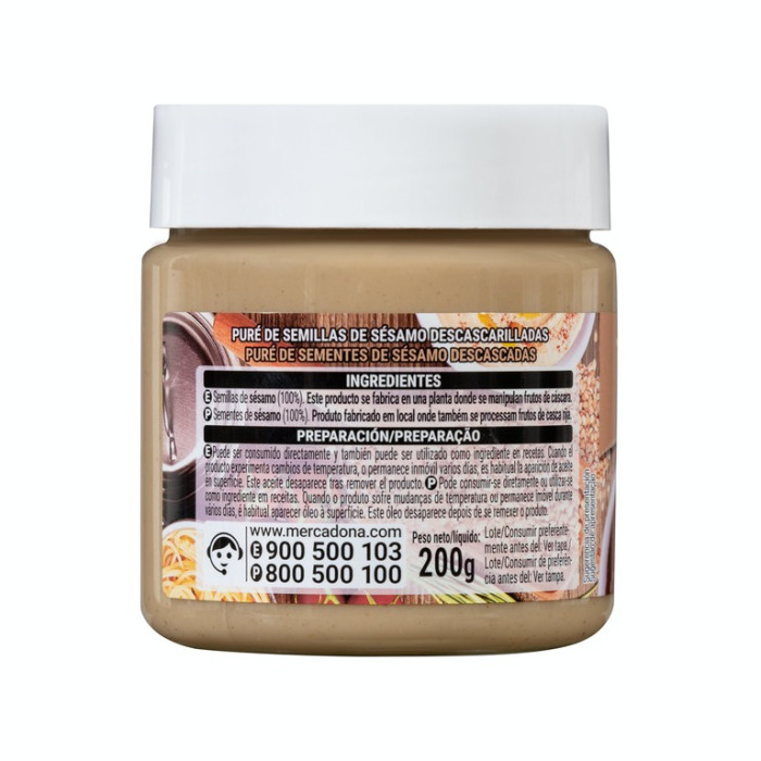 Паста состоит на 100% из кунжутных семян. Для приготовления соуса тахини концентрированную кунжутную пасту разбавляют холодной водой и добавляют в нее лимонный сок, соль.