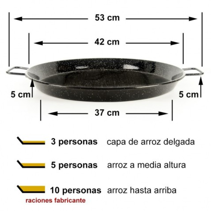 Сковорода для паэльи идеально применяется по своему прямому назначению, а также может использоваться для множества других целей: её можно ставить на открытый нагрев, в духовку, и даже выставлять прямо на стол в соответствующих заведениях, где это практикуется. Она имеет среднюю высоту, что существенно облегчает приготовление паэльи и других блюд.