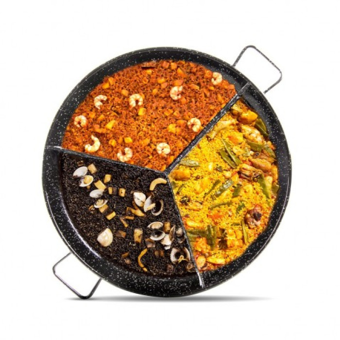 Сковорода паэльера El Cid с эмалированным покрытием и тремя функциональными зонами – идеальный вариант для приготовления паэльи, мяса, овощей, морепродуктов одновременно.